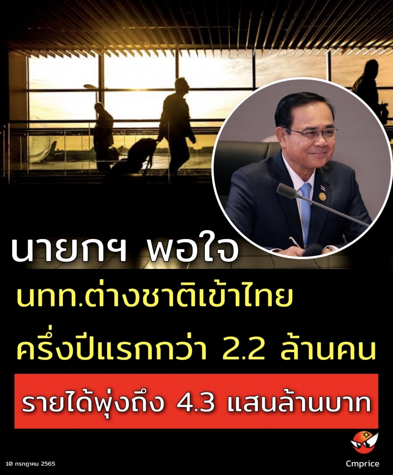 นายกฯ พอใจ นทท.ต่างชาติเข้าไทย ครึ่งปีแรกกว่า 2.2 ล้านคน รายได้พุ่งถึง 4.3 แสนล้านบาท