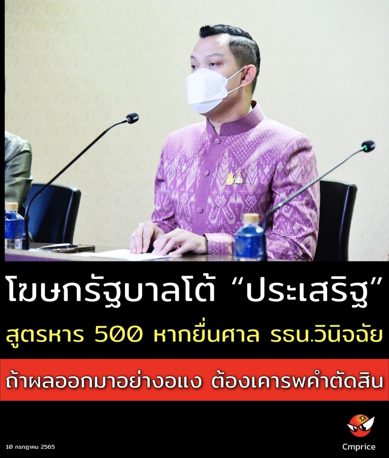 | • โฆษกรัฐบาลโต้ ประเสริฐ สูตรหาร 500 หากยื่นศาล รธน.วินิจฉัย ถ้าผลออกมาอย่างอแง ต้องเคารพคำตัดสิน |