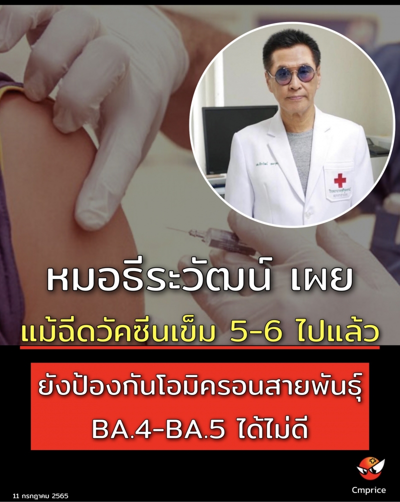 | • หมอธีระวัฒน์เผยแม้ฉีดวัคซีนเข็ม 5-6 ไปแล้ว ยังป้องกันโอมิครอนสายพันธุ์ BA.4-BA.5 ได้ไม่ดี |