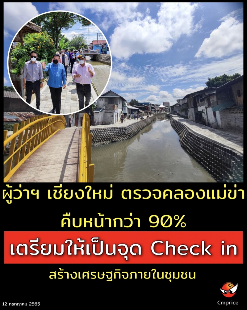 | • ผู้ว่าฯ เชียงใหม่ ตรวจคลองแม่ข่า เผยคืบหน้าไปแล้วกว่าร้อยละ 90 จุด เตรียมให้เป็นจุด Check in สร้างเศรษฐกิจภายในชุมชน |