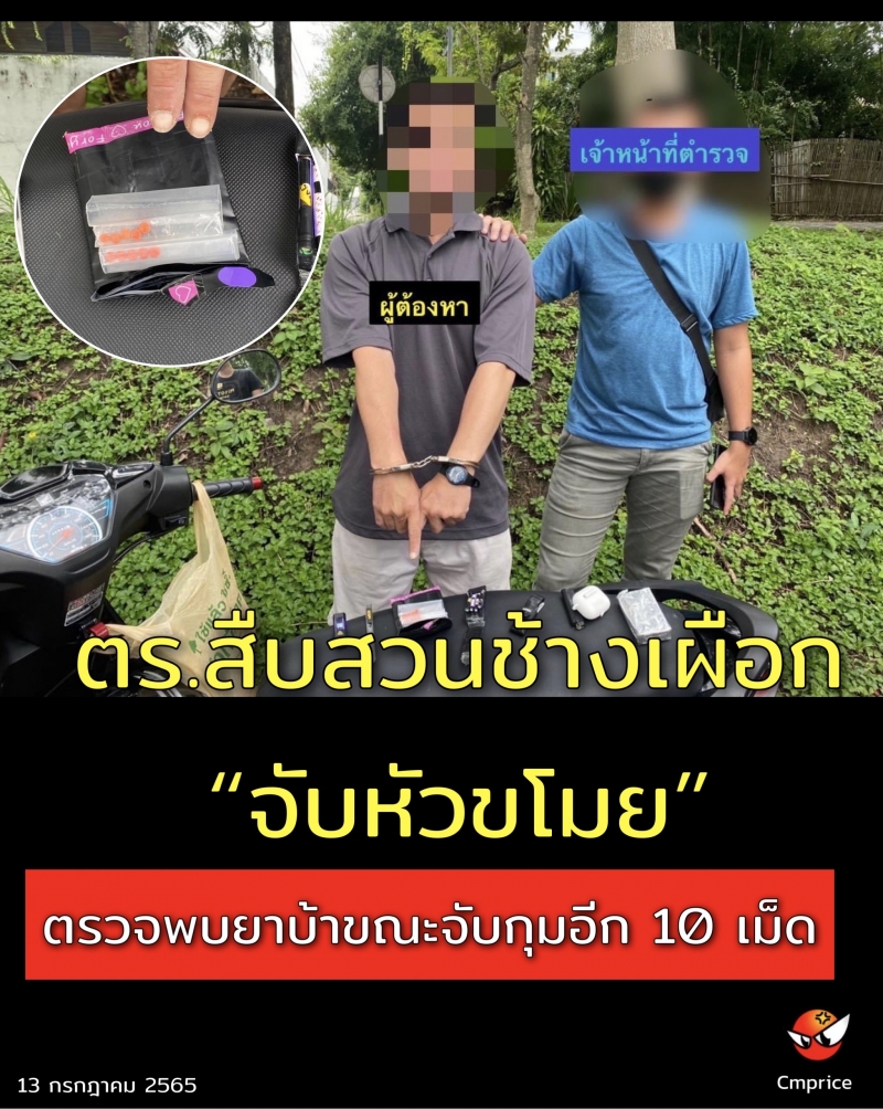 | • ตร.สืบสวนช้างเผือกจับหัวขโมย ตรวจพบยาบ้าขณะจับกุมอีก 10 เม็ด |