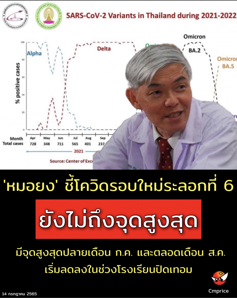 14 ก.ค.2565 - ศ.นพ.ยง ภู่วรวรรณ หัวหน้าศูนย์เชี่ยวชาญเฉพาะทางด้านไวรัสวิทยา คลินิกภาควิชากุมารเวชศาสตร์คณะแพทยศาสตร์ จุฬาลงกรณ์มหาวิทยาลัย โพสต์เฟซบุ๊กระบุ