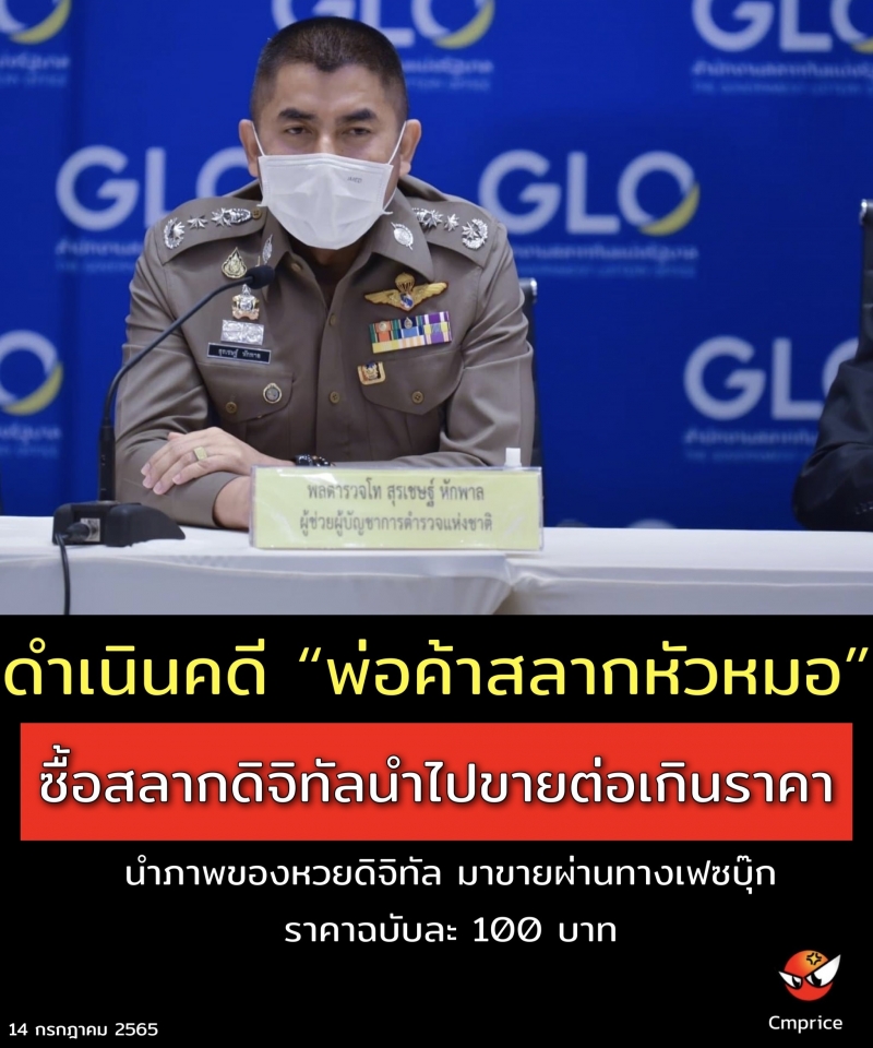 พล.ต.ท.สุรเชษฐ์ หักพาล ผู้ช่วย ผบ.ตร. เปิดเผยว่า จากกรณี พ.ท.หนุน ศันสนาคม ผอ.สำนักงานสลากฯ ได้มอบหมายผู้แทนสำนักงานสลากกินแบ่งรัฐบาล เข้าแจ้งความต่อพนักงานสอบสวน สภ.รัตนาธิเบศร์ ภ.จว.นนทบุรี เมื่อวันที่ 5 ก.ค.ที่ผ่านมา ให้ดำเนินคดีกับผู้ที่มีพฤติการณ์จำหน่ายสลากกินแบ่งรัฐบาลเกินราคา โดยนำภาพของสลากกินแบ่งรัฐบาล ที่มีการจำหน่ายผ่านช่องทางสลากดิจิทัล มาเสนอขายผ่านทางเฟซบุ๊ก ราคาฉบับละ 100 บาท