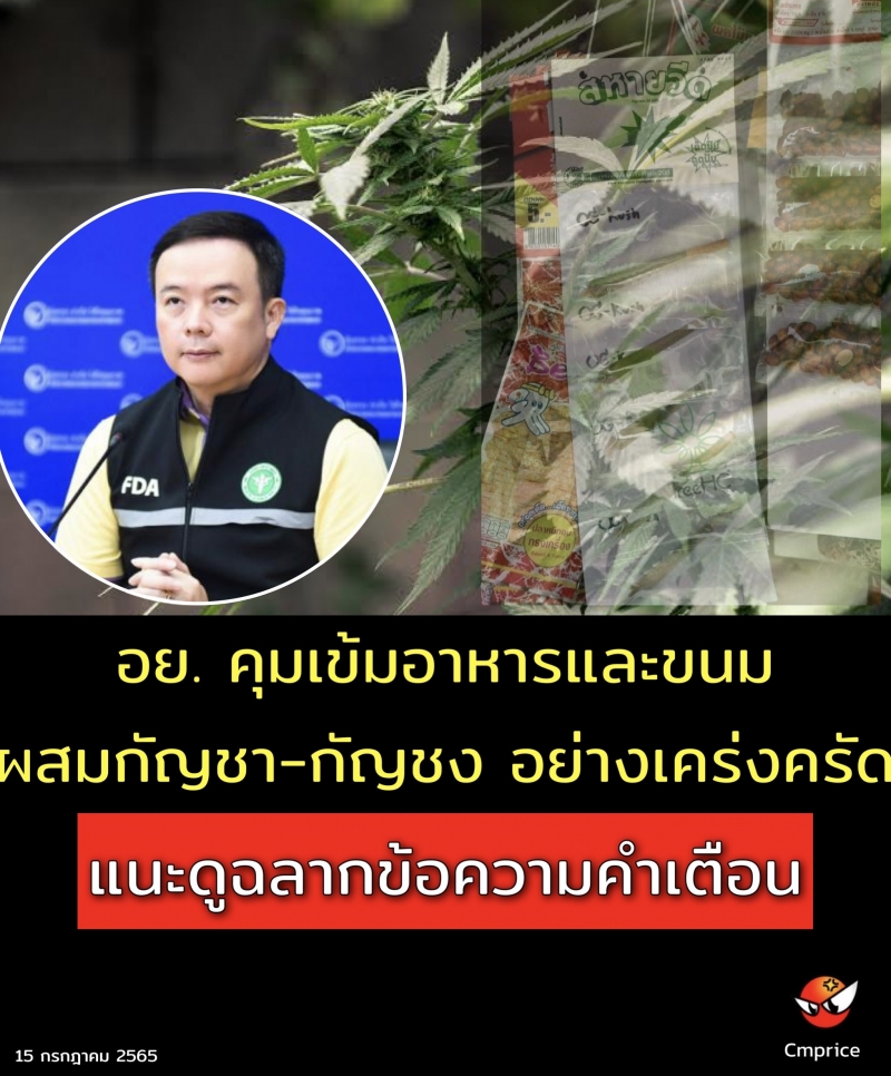 เภสัชกรวีระชัย นลวชัย รองเลขาธิการคณะกรรมการอาหารและยา เปิดเผยว่า ตามที่มีข้อห่วงใย เรื่องอาหารและขนมผสมกัญชา กัญชง เกรงเด็กจะซื้อไปบริโภค สำนักงานคณะกรรมการอาหารและยา (อย.)มีมาตรการในการกำกับดูแลอย่างเคร่งครัด โดยออกประกาศกระทรวงสาธารณสุข กำกับดูแลอาหารที่มีส่วนผสมกัญชา กัญชง ให้มีคุณภาพมาตรฐาน โดยคำนึงถึงข้อมูลความปลอดภัยตามหลักวิชาการ มีการกำกับดูแลให้ผลิตภัณฑ์อาหารใส่กัญชา กัญชงได้รับ อย. ถูกต้อง กำหนดให้ฉลากผลิตภัณฑ์แสดง ข้อแนะนำการบริโภคเพื่อความปลอดภัย "ไม่ควรบริโภคเกินวันละ 2 หน่วยบรรจุ" และแสดงข้อความคำเตือนที่เห็นได้ชัดเจนบนฉลากผลิตภัณฑ์อาหารที่มีส่วนผสมของกัญชา กัญชงได้แก่ “เด็ก สตรีมีครรภ์ และสตรีให้นมบุตร ไม่ควรรับประทาน” “หากมีอาการผิดปกติ ควรหยุดรับประทานทันที” “ผู้ที่แพ้หรือไวต่อสาร THC หรือ CBD ควรระวังในการรับประทาน” และ “อาจทำให้ง่วงซึมได้ ควรหลีกเลี่ยงการขับขี่ยานพาหนะ หรือ ทำงานเกี่ยวกับเครื่องจักรกล” ผลิตภัณฑ์ที่ได้รับอนุญาตต้องมีความปลอดภัย และมีผลวิเคราะห์ยืนยันปริมาณ THC ไม่เกินที่กฎหมายกำหนด และมีมาตรการกำกับดูแลสถานที่ผลิต และคุณภาพมาตรฐานอาหารมีมาตรการเฝ้าระวังอาหารที่มีส่วนผสมของกัญชากัญชงในท้องตลาดทุกช่องทางการจำหน่าย และเก็บตัวอย่างผลิตภัณฑ์อาหารส่งตรวจวิเคราะห์ปริมาณ THC/CBD และคุณภาพมาตรฐานอื่นที่กรมวิทยาศาสตร์การแพทย์ หากพบไม่ได้คุณภาพมาตรฐานก็จะดำเนินการตามกฎหมายอย่างเข้มงวด