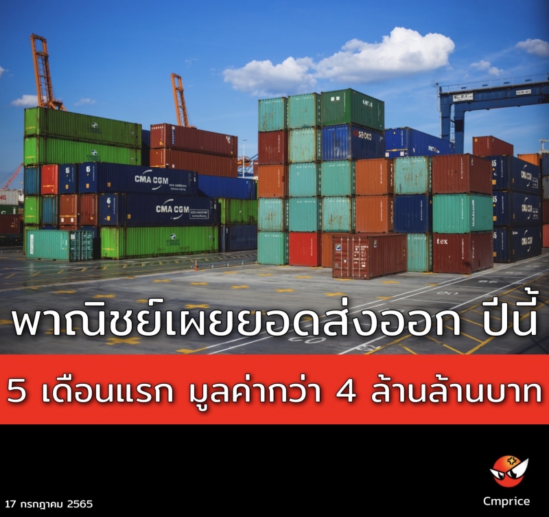 | • พาณิชย์เผยยอดส่งออก ปีนี้ 5 เดือนแรก มูลค่ากว่า 4 ล้านล้านบาท |
