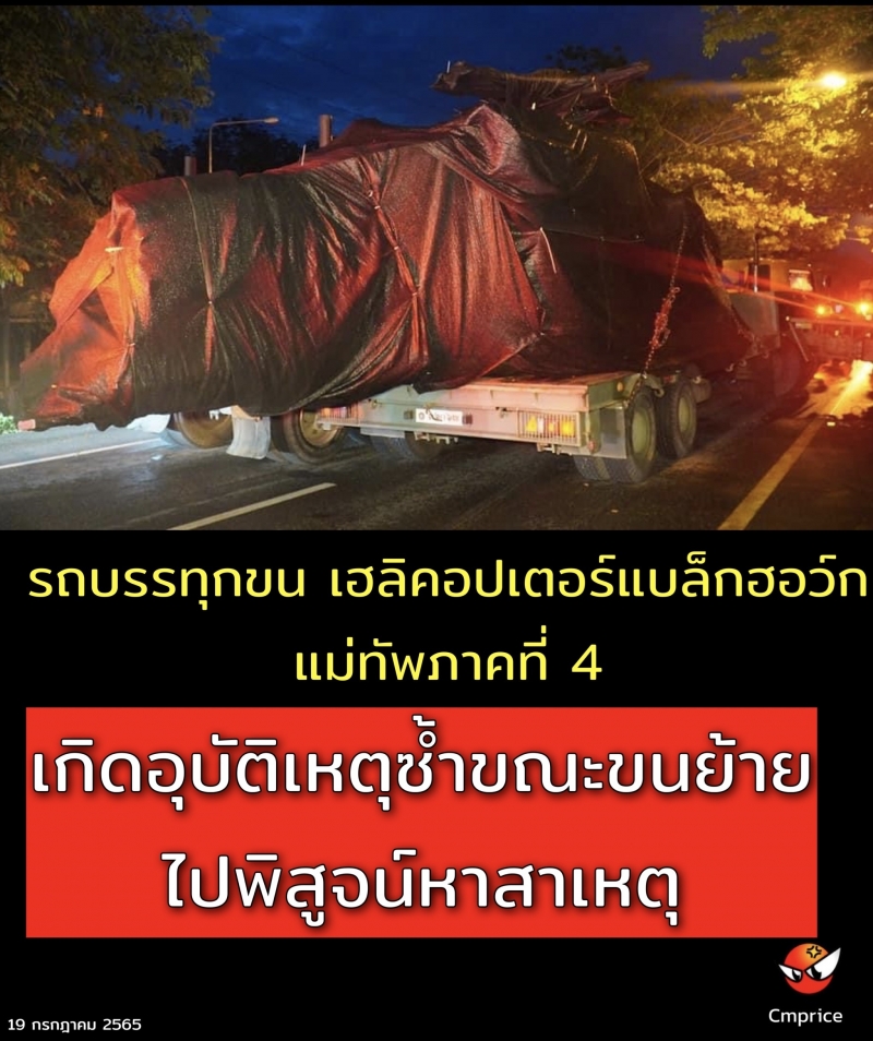 | • รถบรรทุกขนเฮลิคอปเตอร์แบล็กฮอว์กแม่ทัพภาคที่ 4 เกิดอุบัติเหตุซ้ำขณะขนย้ายไปพิสูจน์หาสาเหตุ |