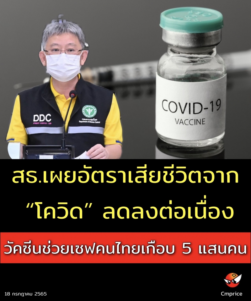 สธ.เผยอัตราเสียชีวิตจาก “โควิด” ลดลงต่อเนื่อง วัคซีนช่วยเซฟคนไทยเกือบ 5แสนคน