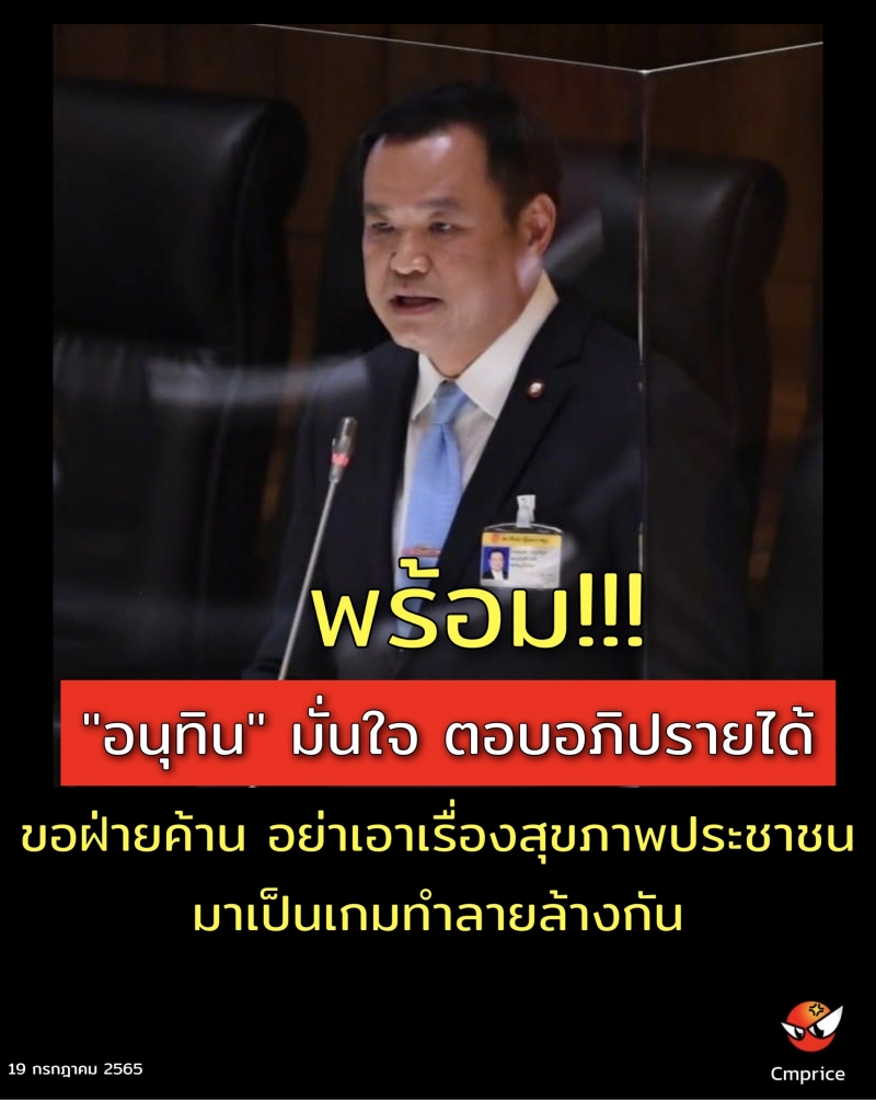 | • เตรียมพร้อม ! "อนุทิน" มั่นใจ ตอบอภิปรายได้ ขอฝ่ายค้าน อย่าเอาเรื่องสุขภาพประชาชน มาเป็นเกมทำลายล้างกัน |