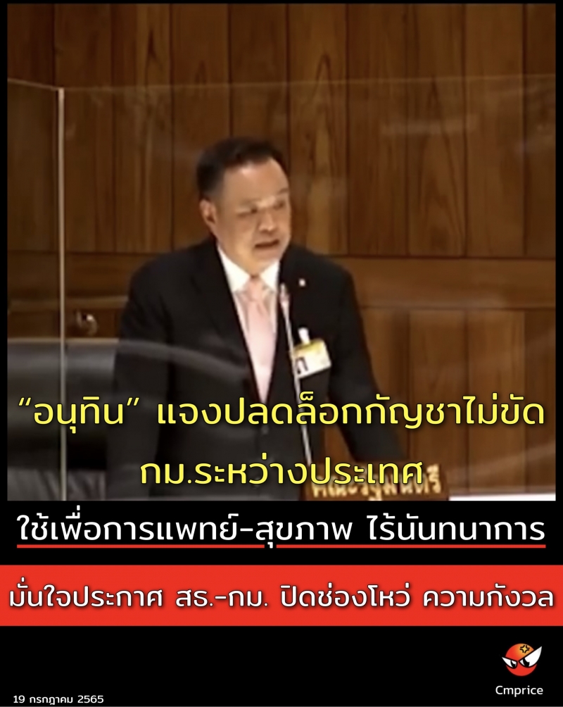 นายอนุทิน ชาญวีรกูล รองนายกรัฐมนตรี และรมว.สาธารณสุข ชี้แจงประเด็น “กัญชา” ระบุว่า นโยบายการปลดล็อกกัญชาทางการแพทย์ อยู่ในหมวดนโยบายเร่งด่วน ครม. แถลงไว้ (25 ก.ค. 2562) ว่า “นโยบายกัญชา ไม่ขัดต่ออนุสัญญาเดี่ยว ว่าด้วยยาเสพติดให้โทษขององค์การสหประชาชาติ” ซึ่งสามารถนำกัญชา กัญชงมาใช้ประโยชน์ทางการแพทย์ได้ ใช้ให้เกิดประโยชน์ทางเศรษฐกิจ ไม่มีคำว่า “นันทนาการ” แต่อย่างใด