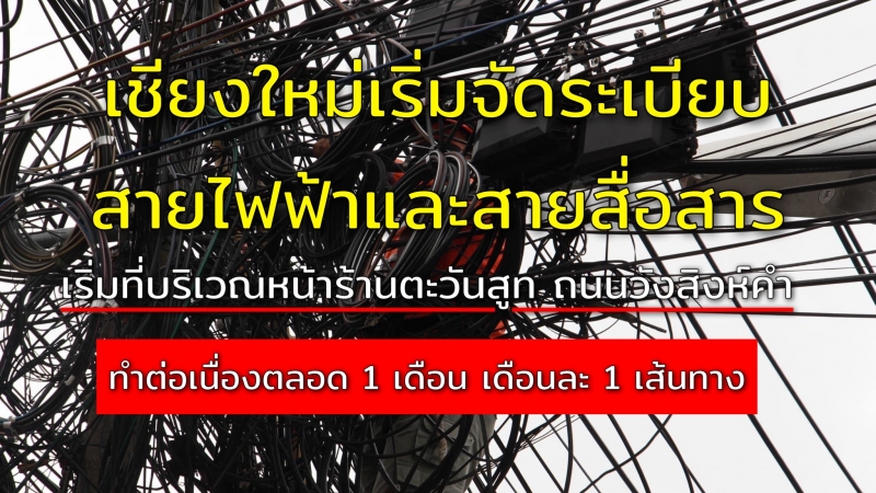 | • เชียงใหม่ Kick Off จัดระเบียบสายไฟฟ้าและสายสื่อสาร เริ่มที่บริเวณหน้าร้านตะวันสูท ถนนวังสิงห์คำ |