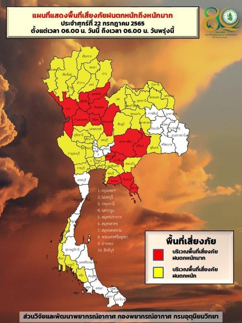 | • กรมอุตุฯ ประกาศฉบับที่ 7 ไทยฝนตกหนักถึงหนักมาก วันที่ 22-24 ก.ค. 65 ภาคเหนือวันนี้มีฝน 80% |