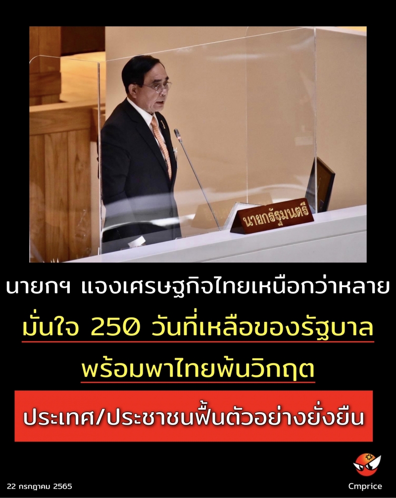 นายกฯ แจงเศรษฐกิจไทยเหนือกว่าหลายประเทศมั่นใจ 250 วันที่เหลือของรัฐบาล พร้อมพาไทยพ้นวิกฤต ประเทศ/ประชาชนฟื้นตัวอย่างยั่งยืน