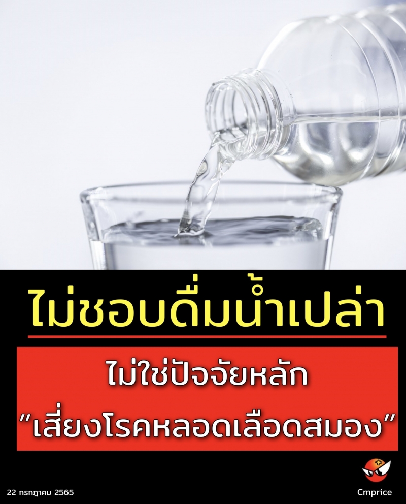 | • กรมการแพทย์แนะ ไม่ชอบดื่มน้ำเปล่า ไม่ใช่ปัจจัยหลัก เสี่ยงโรคหลอดเลือดสมอง |