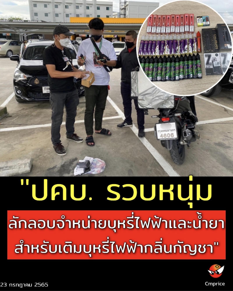 "ปคบ.รวบหนุ่มลักลอบจำหน่ายบุหรี่ไฟฟ้าและน้ำยาสำหรับเติมบุหรี่ไฟฟ้ากลิ่นกัญชา"