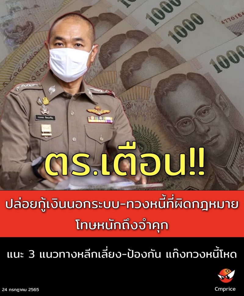 สำนักงานตำรวจแห่งชาติ เตือนภัยการกู้เงินนอกระบบ การทวงหนี้ที่ผิดกฎหมาย การปล่อยกู้ที่ไม่ได้รับอนุญาต มีโทษหนักถึงจำคุก