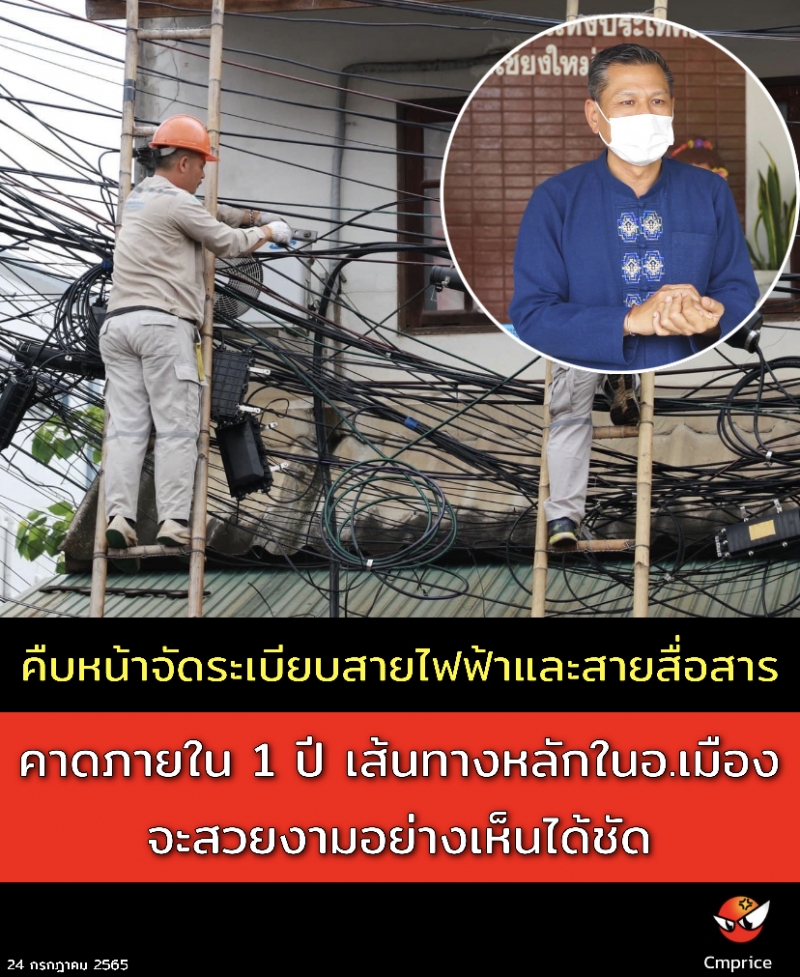 | • คืบหน้าจัดระเบียบสายไฟฟ้าและสายสื่อสารเชียงใหม่คาดภายใน 1 ปี เส้นทางหลักในอำเภอเมืองเชียงใหม่ จะสวยงามอย่างเห็นได้ชัด |