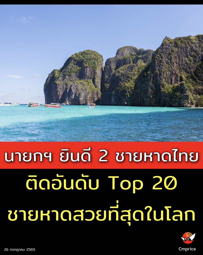 วันนี้ (วันที่ 26 กรกฎาคม 2565) นายธนกร วังบุญคงชนะ โฆษกประจำสำนักนายกรัฐมนตรี เปิดเผยว่า พลเอก ประยุทธ์ จันทร์โอชา นายกรัฐมนตรีและรัฐมนตรีว่าการกระทรวงกลาโหม ยินดีที่ชายหาดไทยติดอันดับ Top 20 ชายหาดสวยที่สุดในโลกถึง 2 แห่ง พร้อมสั่งการให้หน่วยงานที่เกี่ยวข้องเดินหน้ากระตุ้นการท่องเที่ยวภายในประเทศอย่างต่อเนื่อง รวมทั้งส่งเสริมการจัดกิจกรรมผ่านงานแสดงสินค้า งานเทศกาลต่าง ๆ เพื่อดึงดูดนักท่องเที่ยวและผู้ที่สนใจเพิ่มเติม