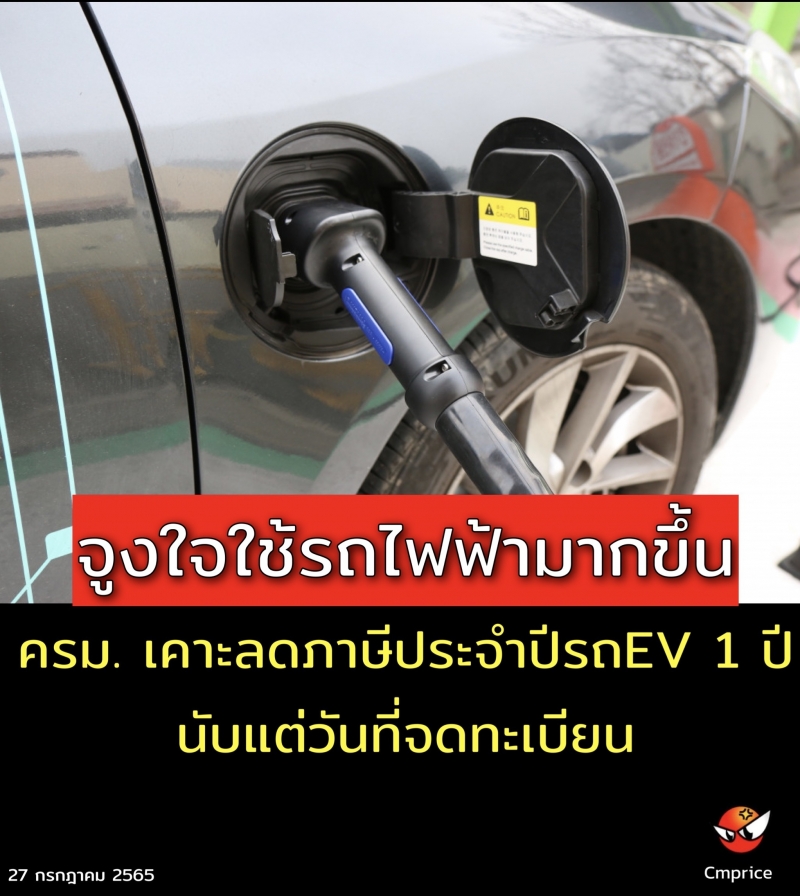 ประชุมคณะรัฐมนตรี มีมติอนุมัติหลักการร่าง พ.ร.ฎ. ลดภาษีประจำปีสำหรับรถที่ขับเคลื่อนด้วยพลังงานไฟฟ้าเพียงอย่างเดียว ตามกฎหมายว่าด้วยรถยนต์ พ.ศ. .... มีสาระสำคัญเป็นการกำหนดให้ลดอัตราภาษีประจำปี สำหรับรถที่ขับเคลื่อนด้วยพลังงานไฟฟ้าเพียงอย่างเดียวที่จดทะเบียน ระหว่างวันที่ 1 ต.ค. 65 ถึงวันที่ 30 ก.ย. 68 ลงร้อยละ 80 ของอัตราที่กำหนดตาม (11) ของอัตราภาษีประจำปีท้าย พ.ร.บ. รถยนต์ พ.ศ. 22 ซึ่งแก้ไขเพิ่มเติม โดย พ.ร.บ. รถยนต์ (ฉ. 14) พ.ศ. 50 เป็นระยะเวลา 1 ปี นับแต่วันที่จดทะเบียน เพื่อจูงใจให้มีการใช้ยานยนต์ไฟฟ้ามากขึ้น การใช้ยานยนต์ไฟฟ้าที่เป็นมิตรสิ่งแวดล้อม ลดปริมาณการปล่อยก๊าซคาร์บอนไดออกไซด์และปริมาณ PM 2.5 ในอากาศตลอดจนช่วยกระตุ้นระบบเศรษฐกิจการผลิตยานยนต์ไฟฟ้าในภาพรวมของประเทศด้วย