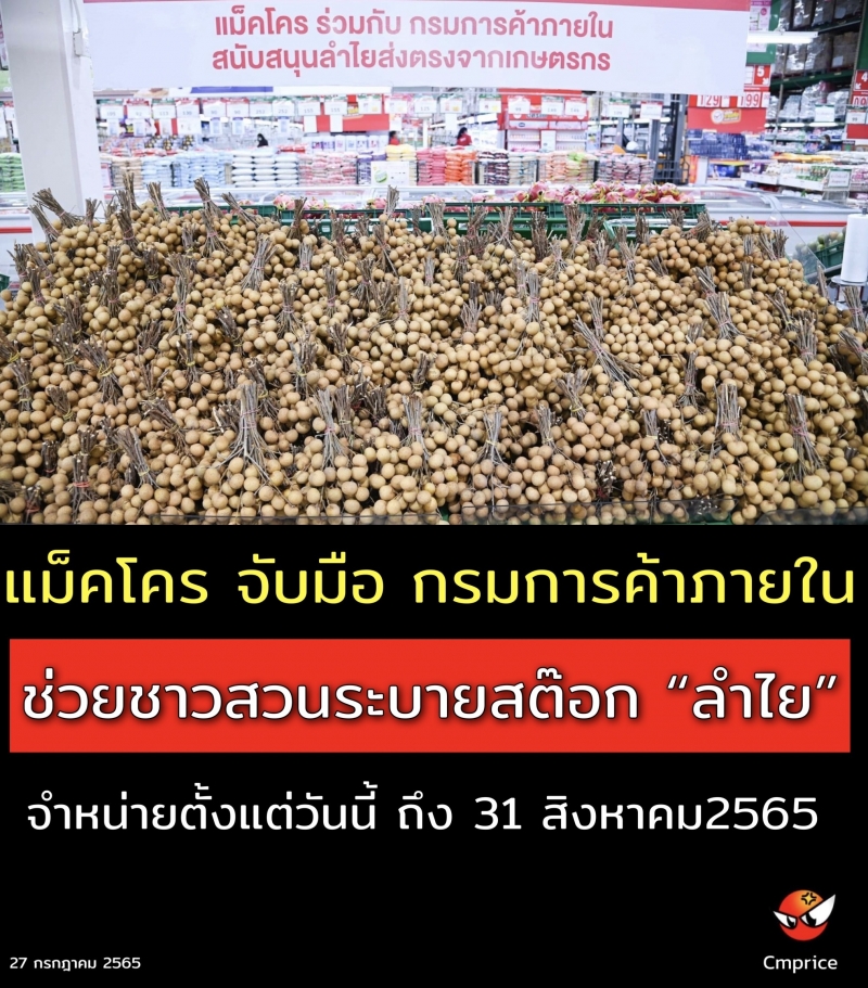 แม็คโคร จับมือ กรมการค้าภายใน จัด “ลำไย ปันสุข…คืนสุข สู่ชุมชน”ช่วยชาวสวนรับมือผลผลิตล้นตลาด