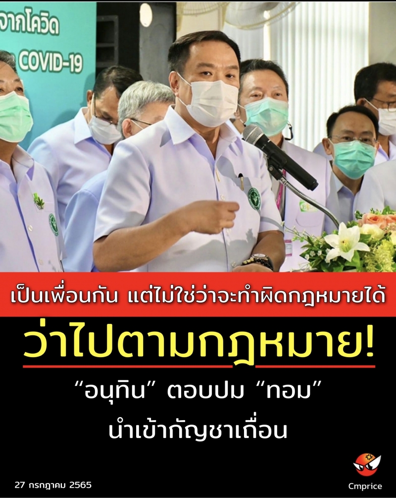 | • เป็นเพื่อนกัน แต่ไม่ใช่ว่าจะทำผิดกฎหมายได้ ว่าไปตามกฎหมาย ! อนุทิน ตอบปม ทอม นำเข้ากัญชาเถื่อน |