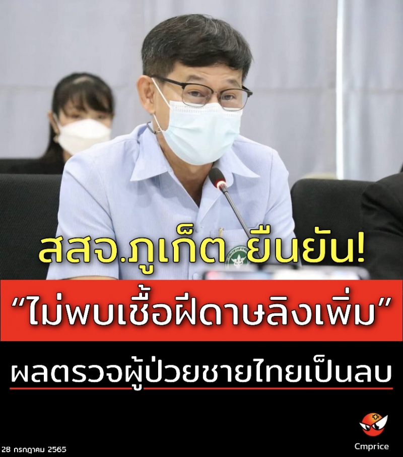 | • สสจ.ภูเก็ต ยืนยัน! ผลตรวจผู้ป่วยชายไทย ไม่พบเชื้อฝีดาษลิง |