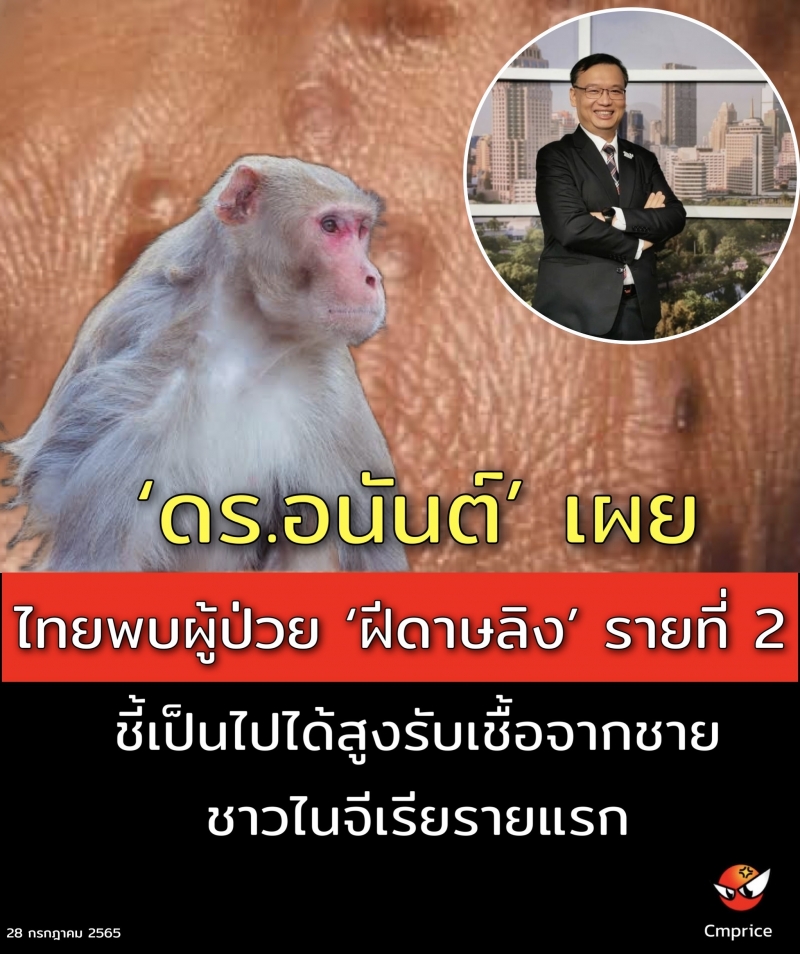 | • ดร.อนันต์ เผย ไทยพบผู้ป่วย ฝีดาษลิง รายที่ 2 ชี้เป็นไปได้สูงรับเชื้อจากชายชาวไนจีเรียรายแรก |