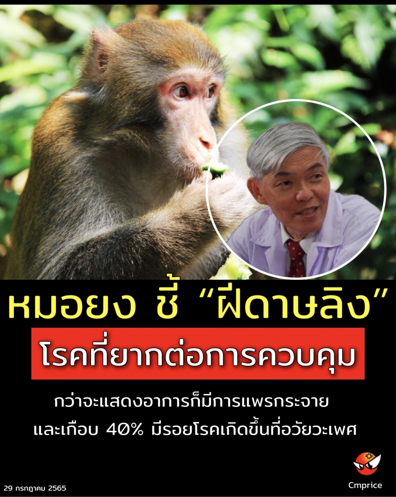 29 ก.ค. 65 ศ.นพ.ยง ภู่วรวรรณ หัวหน้าศูนย์เชี่ยวชาญเฉพาะทางด้านไวรัสวิทยาคลินิก ภาควิชากุมารเวชศาสตร์คณะแพทยศาสตร์ จุฬาลงกรณ์มหาวิยาลัยได้ออกมาโพสต์เฟซบุ๊กส่วนตัว Yong Poovorawan ระบุ...ฝีดาษวานร โรคที่ยากต่อการควบคุม