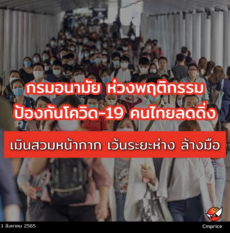 | • กรมอนามัย ห่วงพฤติกรรมป้องกันโควิด-19 คนไทยลดดิ่ง เมินสวมหน้ากาก เว้นระยะห่าง ล้างมือ |