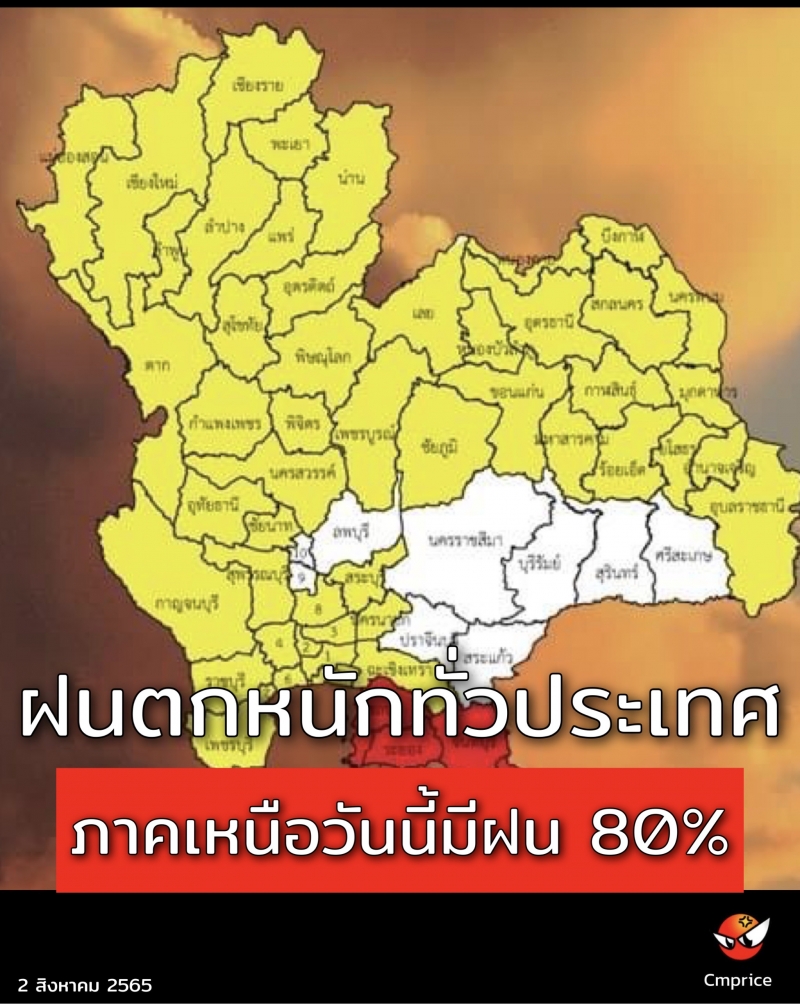 มีฝนฟ้าคะนองร้อยละ 80 ของพื้นที่ กับมีฝนตกหนักบางแห่ง