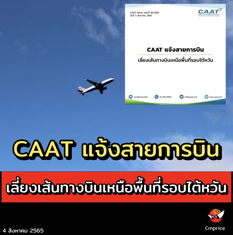 ทั้งนี้ เพื่อความปลอดภัยในการปฏิบัติการบินของผู้ดำเนินการเดินอากาศไทย CAAT จึงได้ขอให้หลีกเลี่ยงทำการบินผ่านเส้นทางบริเวณดังกล่าว และปฏิบัติตาม NOTAM ของจีนอย่างเคร่งครัด รวมทั้งติดตามสถานการณ์และประกาศNOTAM ใหม่ ๆ อย่างต่อเนื่อง