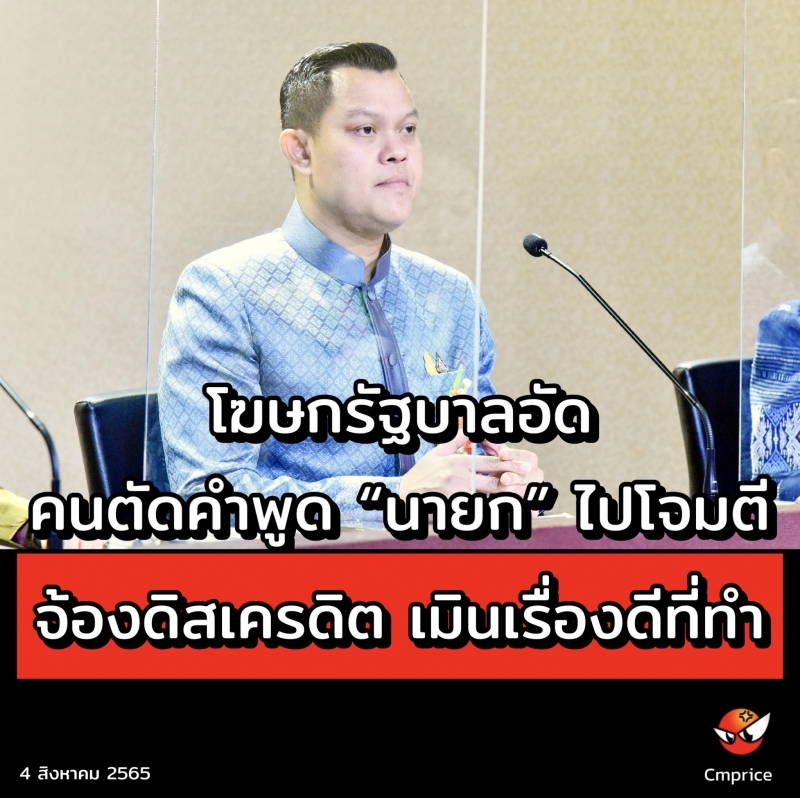 | • โฆษกรัฐบาลอัดคนตัดคำพูด นายก ไปโจมตี จ้องดิสเครดิต เมินเรื่องดีที่ทำ |
