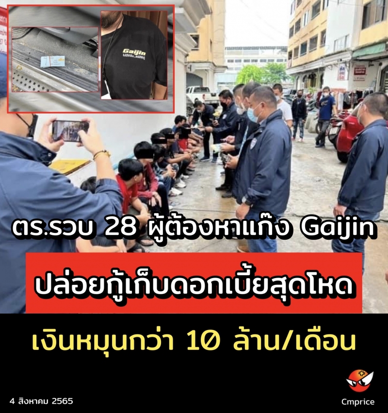 ตำรวจรวบ 28 ผู้ต้องหาแก๊ง Gaijin ปล่อยกู้เก็บดอกเบี้ยสุดโหด เงินหมุนกว่า 10 ล้าน/เดือน