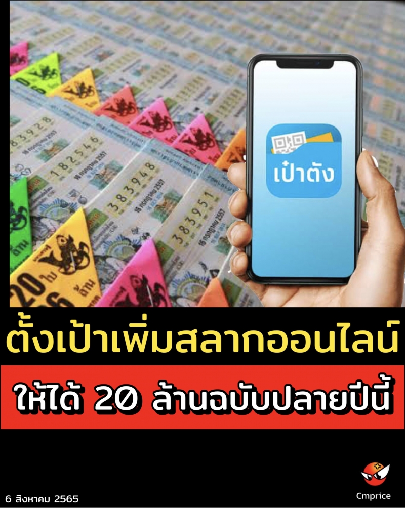 | • ตั้งเป้าเพิ่มสลากกินแบ่งรัฐบาลออนไลน์ให้ได้ 20 ล้านฉบับปลายปีนี้ |