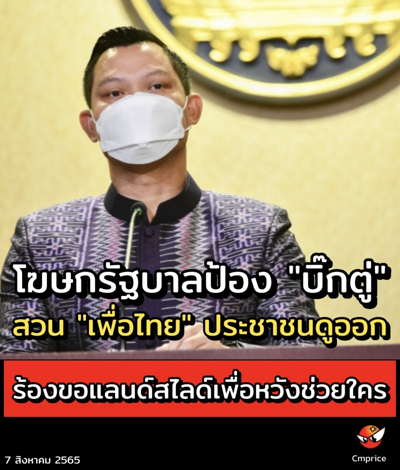| • โฆษกรัฐบาลป้อง "บิ๊กตู่" สวน "เพื่อไทย" ประชาชนดูออก ร้องขอแลนด์สไลด์เพื่อหวังช่วยใคร |