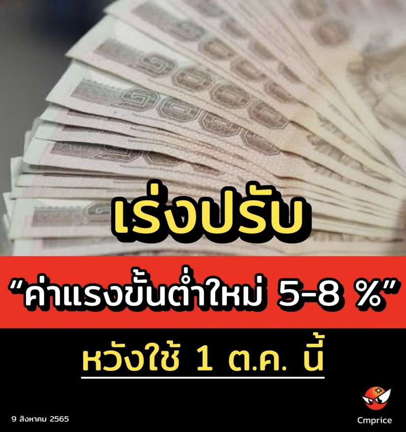 | • เร่งปรับ ค่าแรงขั้นต่ำใหม่ 5-8% หวังใช้ 1 ต.ค. นี้ |