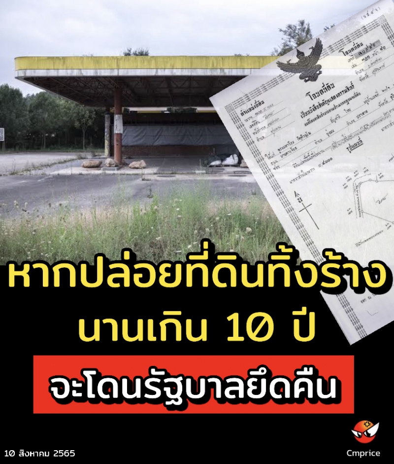 | • ข่าวจริง!!! หากปล่อยที่ดินทิ้งร้างนานเกิน 10 ปี จะโดนรัฐบาลยึดคืน |
