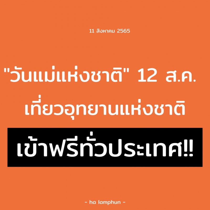 | • 12 สิงหาคม เข้าฟรีทั่วประเทศ อุทยานแห่งชาติ เขตรักษาพันธุ์สัตว์ป่า และเขตห้ามล่าสัตว์ป่า |