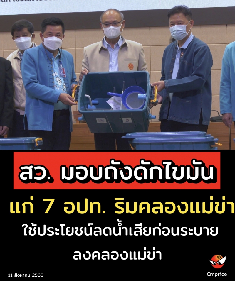 | • สว.มอบถังดักไขมัน แก่ 7 อปท. ริมคลองแม่ข่า ใช้ประโยชน์ลดน้ำเสียก่อนระบายลงคลองแม่ข่า |