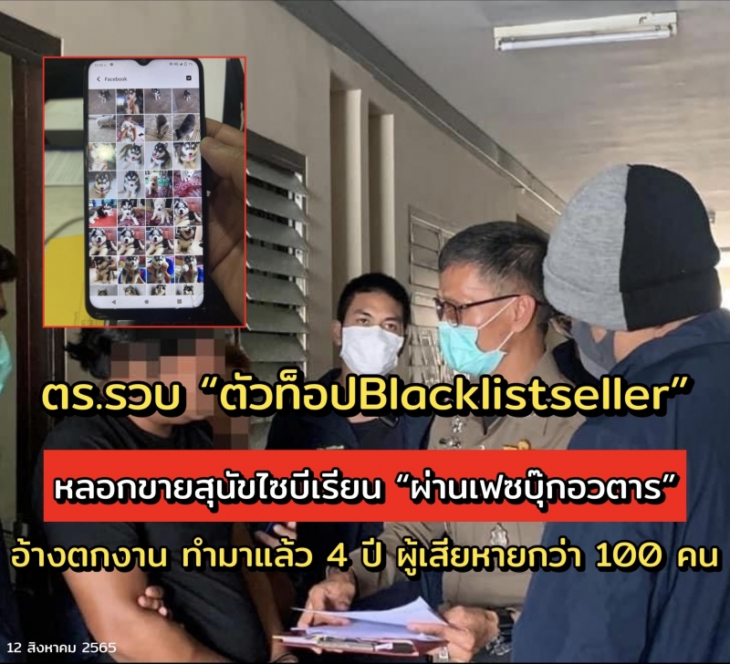 ตำรวจ PCT ซ้อนแผนล่อซื้อ บุกรวบ 'บิว ช่านะ' ตัวท็อป Blacklistseller หลอกขายสุนัขไซบีเรียนฮัสกี้ผ่านเฟซบุ๊กอวตาร อ้างตกงาน ทำมาแล้ว 4 ปี ผู้เสียหายกว่า 100 คน