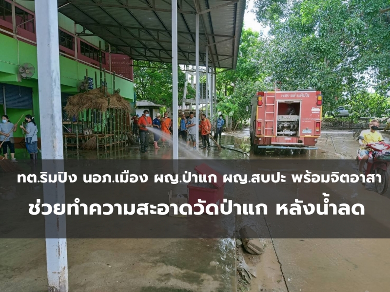 ทต.ริมปิง นอภ.เมือง ผญ.ป่าแก ผญ.สบปะ พร้อมจิตอาสา ช่วยทำความสะอาดวัดป่าแก หลังน้ำลด