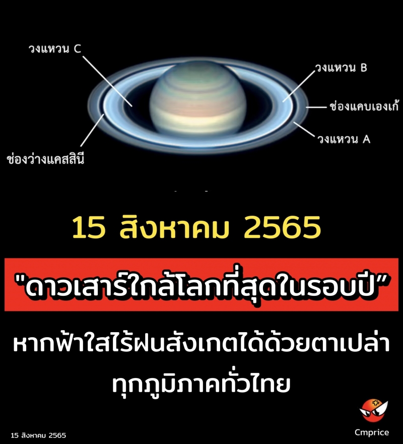 | • 15 สิงหาคม 2565 "ดาวเสาร์ใกล้โลกที่สุดในรอบปี |