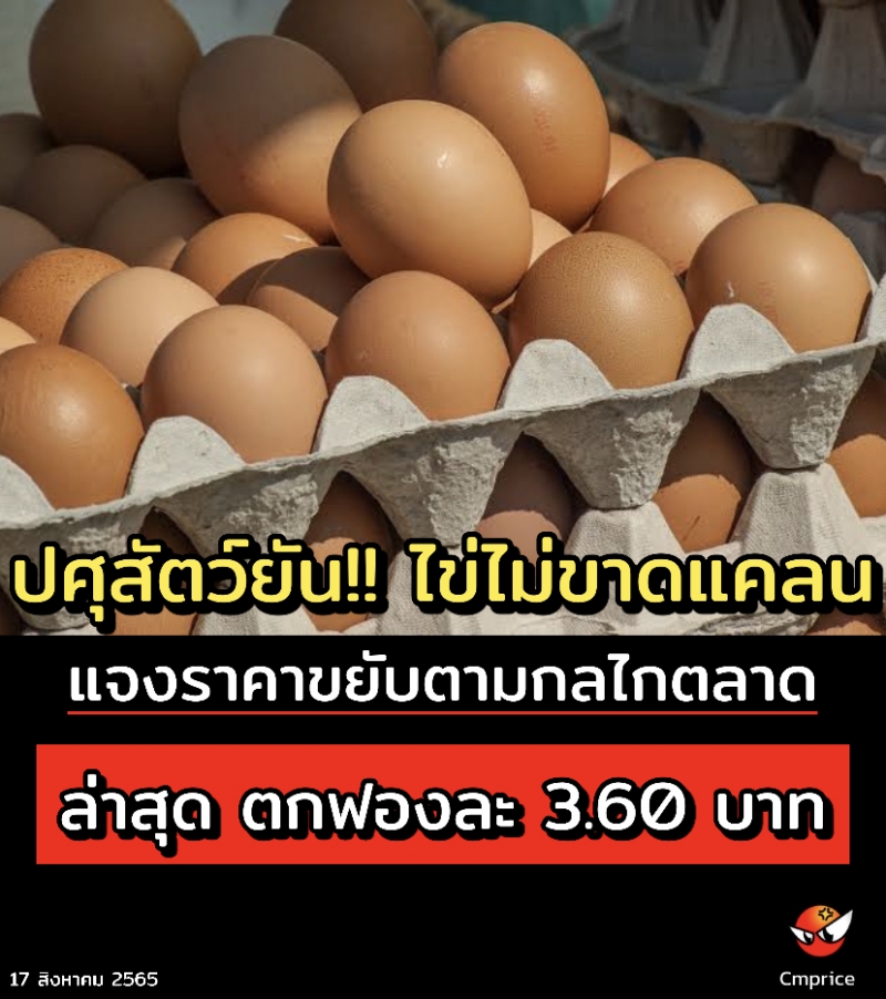 | • ปศุสัตว์ยัน! ไข่ไม่ขาดแคลน แจงราคาขยับตามกลไกตลาด ล่าสุด ตกฟองละ 3.60 บาท |