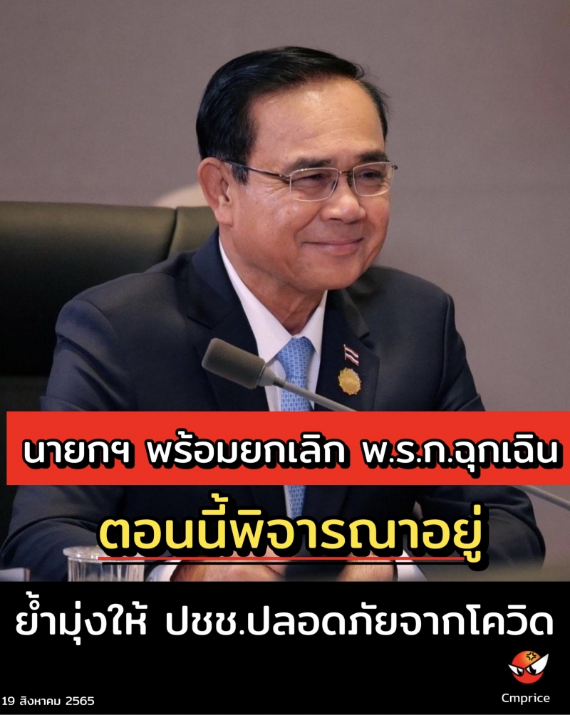 | • นายกฯ พร้อมยกเลิก พ.ร.ก.ฉุกเฉิน ตอนนี้พิจารณาอยู่ ย้ำมุ่งให้ ปชช.ปลอดภัยจากโควิด |