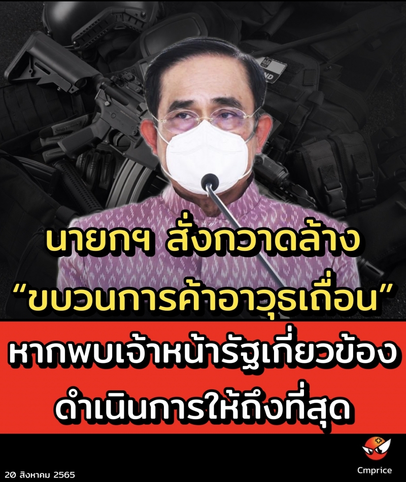 นายกฯ สั่งกวาดล้างขบวนการค้าอาวุธเถื่อน หากพบเจ้าหน้ารัฐเกี่ยวข้องดำเนินการให้ถึงที่สุด เข้มงวดการออกใบอนุญาตให้ซื้ออาวุธปืนและเครื่องกระสุนปืน