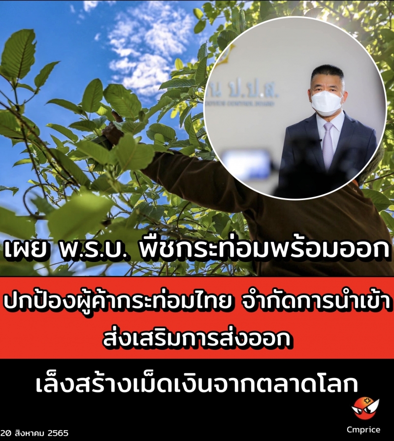 | • เลขา ป.ป.ส. เผย พ.ร.บ. พืชกระท่อมพร้อมออก ปกป้องผู้ค้ากระท่อมไทย จำกัดการนำเข้า ส่งเสริมการส่งออก |