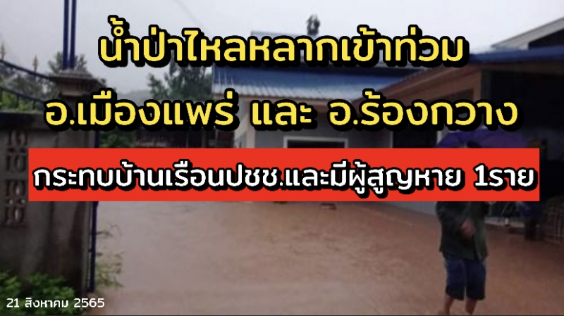 | • น้ำป่าไหลหลากท่วม อ.เมืองแพร่ และอ.ร้องกวาง กระทบบ้านเรือนประชาชนและมีผู้สูญหาย1ราย |