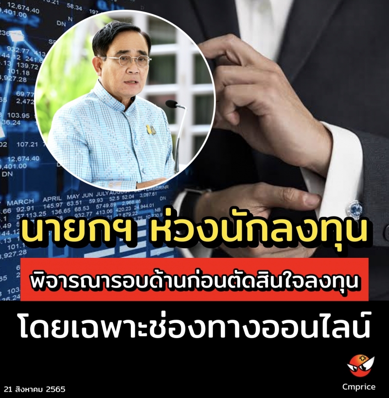 | • ​นายกฯห่วงนักลงทุน พิจารณารอบด้านก่อนตัดสินใจลงทุนทุกประเภท โดยเฉพาะช่องทางออนไลน์ |