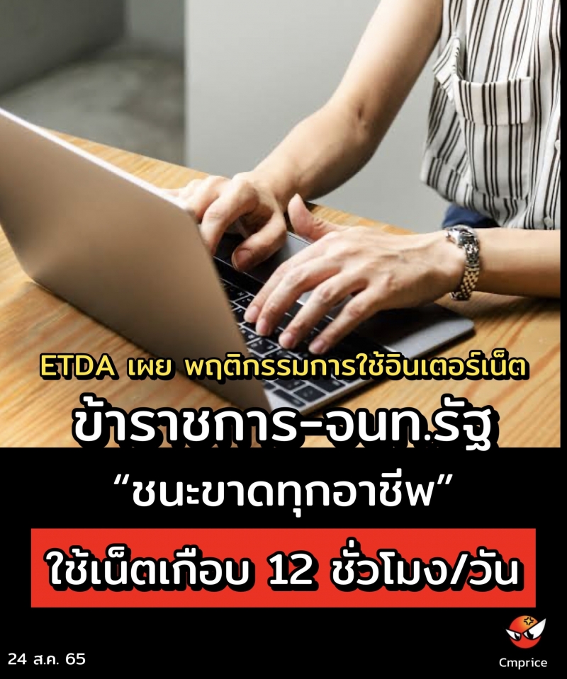 ETDA เผยผลสำรวจ พฤติกรรมการใช้อินเตอร์เน็ตข้าราชการ-จนท.รัฐ ชนะขาดทุกอาชีพ ใช้เน็ตเกือบ 12 ชั่วโมงต่อวัน