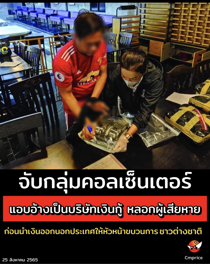 | • จับกลุ่มคอลเซ็นเตอร์ แอบอ้างเป็นบริษัทเงินกู้ หลอกผู้เสียหาย ก่อนนำเงินออกนอกประเทศให้หัวหน้าขบวนการชาวต่างชาติ |