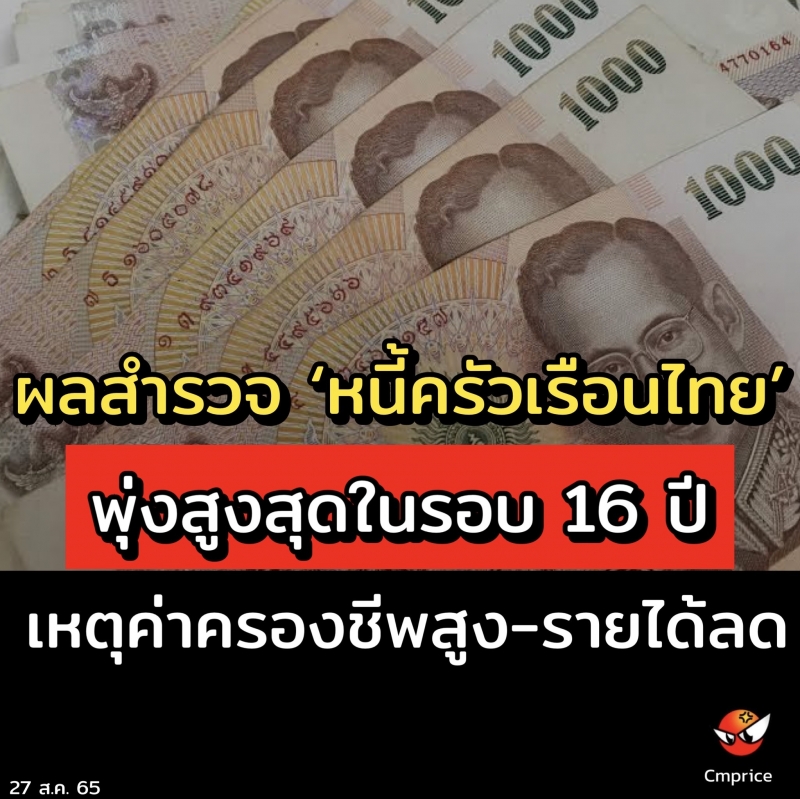 นายธนวรรธน์ พลวิชัย อธิการบดีมหาวิทยาลัยหอการค้าไทย และประธานศูนย์พยากรณ์เศรษฐกิจและธุรกิจ เปิดเผยว่า หนี้ครัวเรือนไทยสิ้นปี 65 จะมีสัดส่วนอยู่ที่ 89.3% ต่อจีดีพี คิดเป็นมูลค่าหนี้ครัวเรือน 14.97 ล้านล้านบาท ซึ่งถือว่าสูงสุดเป็นประวัติการณ์ในรอบ 16 ปี นับตั้งแต่ที่ม.หอการค้าไทย ได้เคยทำการสำรวจมาตั้งแต่ปี 50